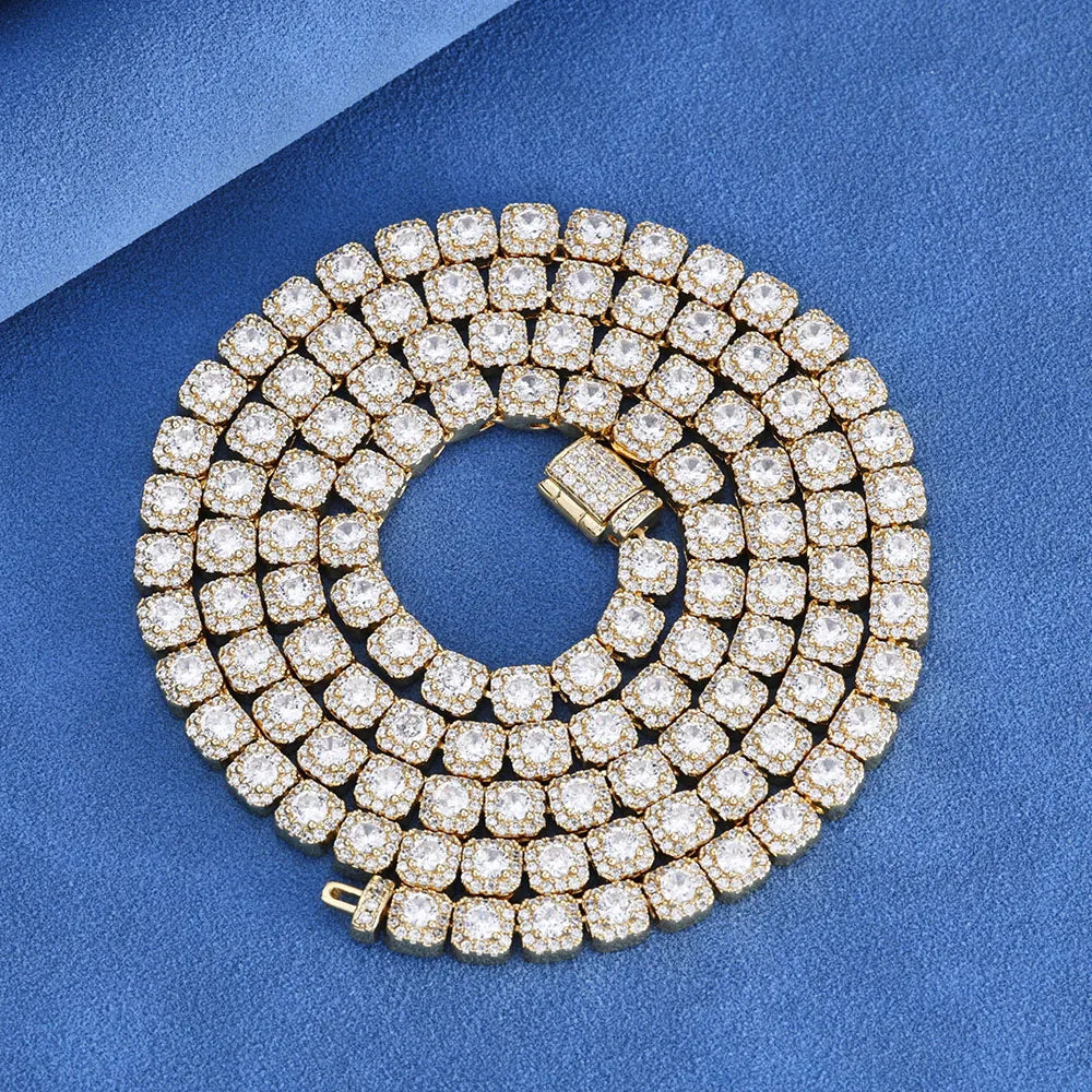 Turn heads with the HHIOK Iced Out Tennis Chain, a bold statement piece crafted for those who love to shine. Made from high-quality brass plated in rich 18K gold, it features brilliant 5A cubic zirconia stones that emulate the fire and clarity of real diamonds. Available in 5mm and 7mm widths, this unisex necklace radiates a luxurious hip-hop aesthetic, perfect for parties, performances, or elevating streetwear looks with a touch of opulence.
