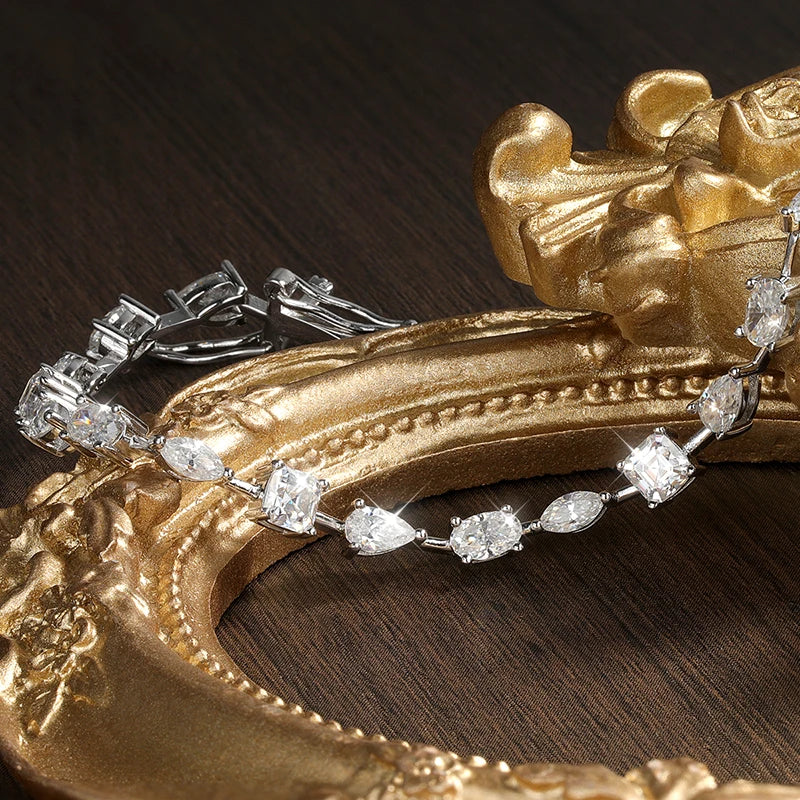 Elevate your elegance with the KNOBSPIN Moissanite Tennis Bracelet, expertly crafted from 925 sterling silver plated in 18K gold and adorned with D VVS1 lab-grown moissanite stones. Each gem radiates diamond-like fire and brilliance, reflecting meticulous craftsmanship and premium quality.